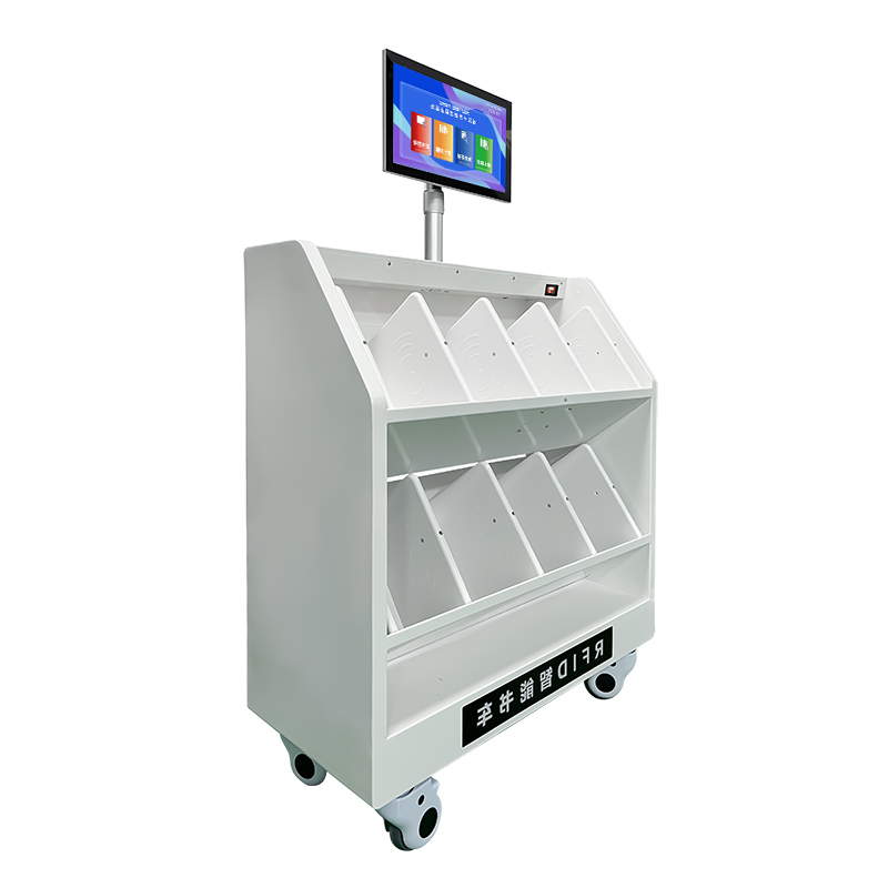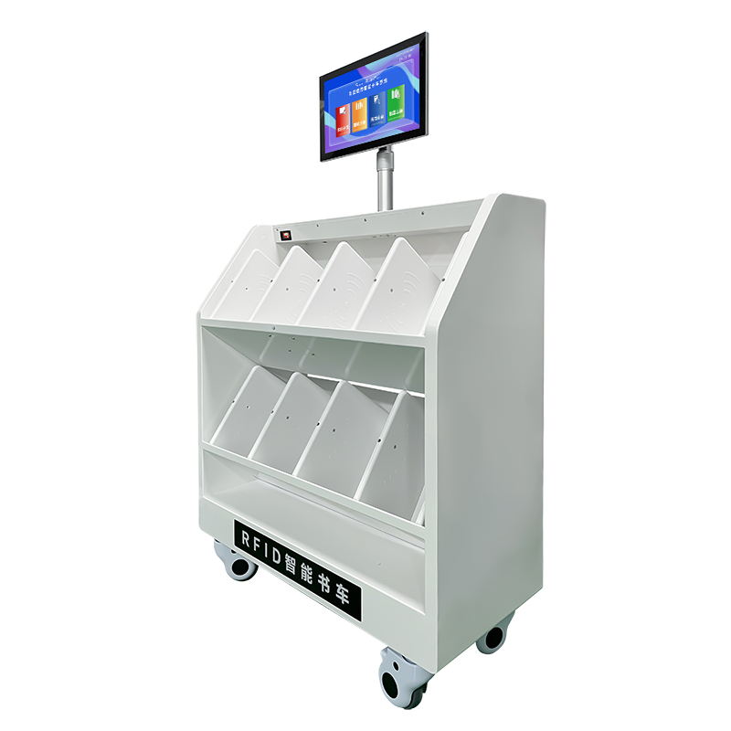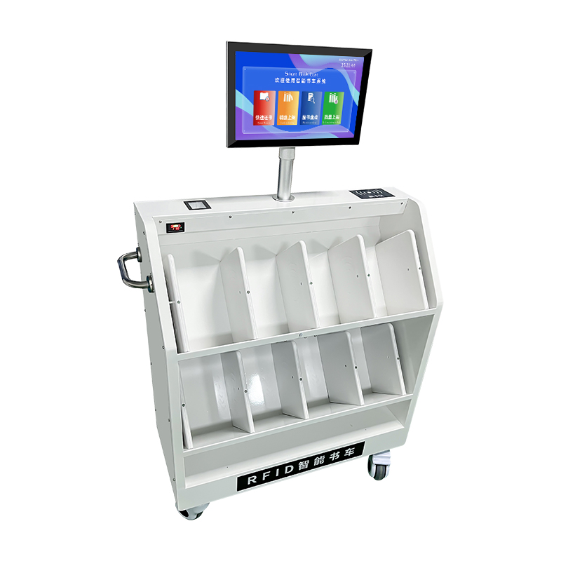 智能还书车是一种新型的智能化设备,配备触摸显示屏或简单操作的人机交流界面、图形界面,通过协议或其他网络及专用接口与图书馆自动化系统数据相连接,由读者自行对图书进行快速归还,读者把图书放到书车上,系统自动对图书进行归还操作,无须读者再做其他操作,极大限度简化读者归还图书的操作。