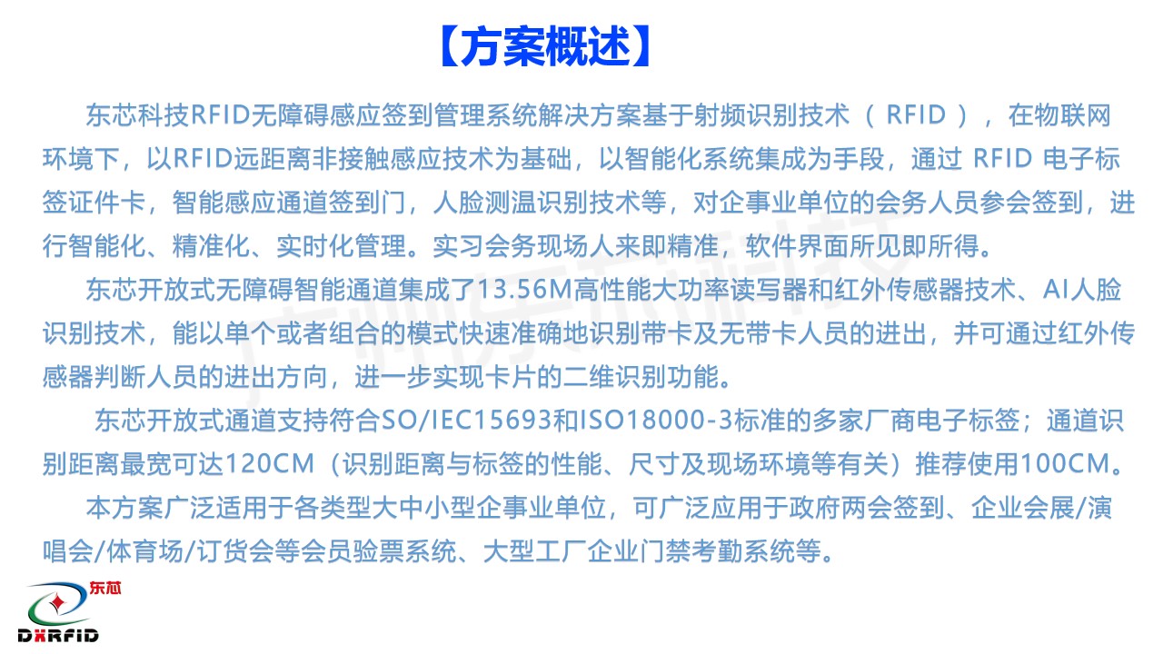 东芯科技RFID无障碍感应签到管理系统解决方案基于射频识别技术( RFID ),在物联网环境下,以RFID远距离非接触感应技术为基础,以智能