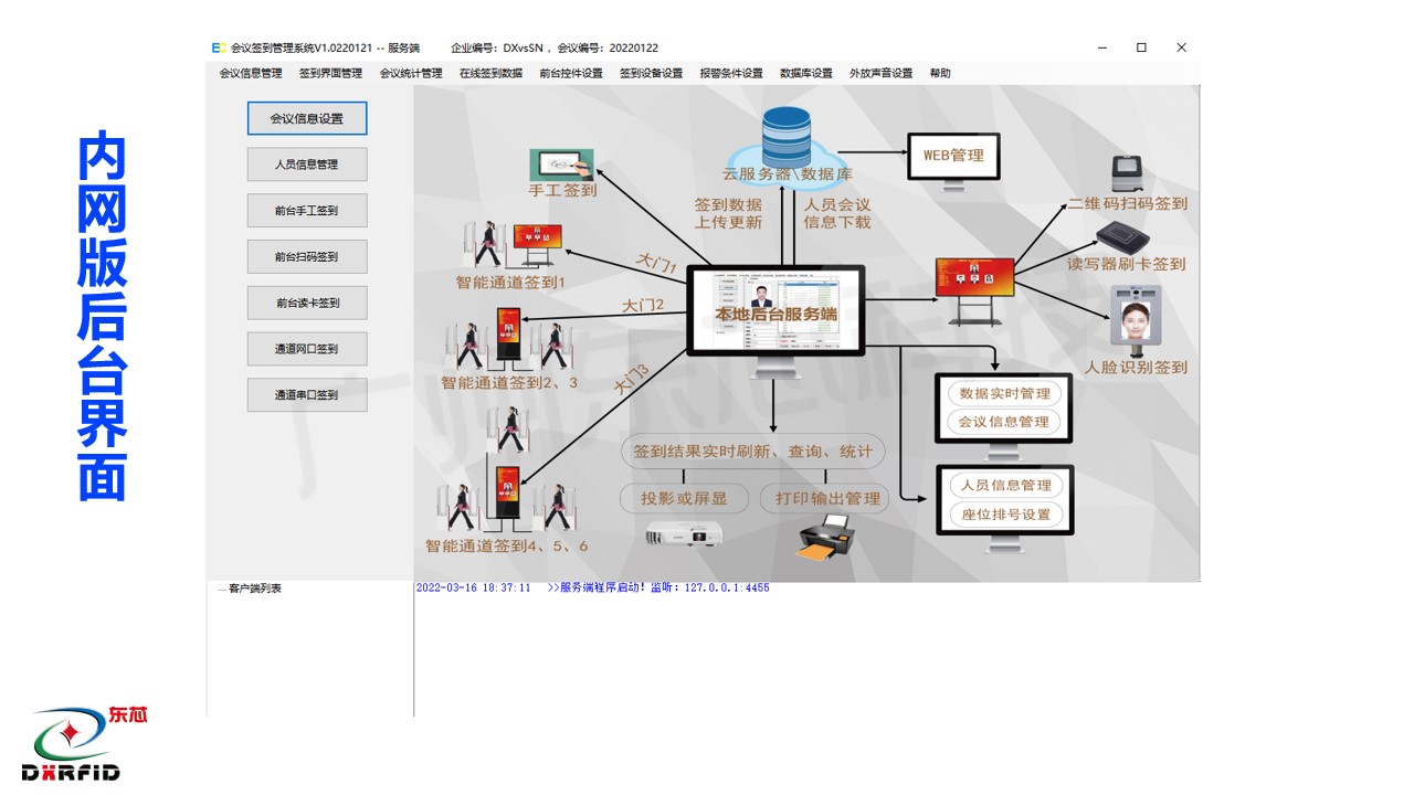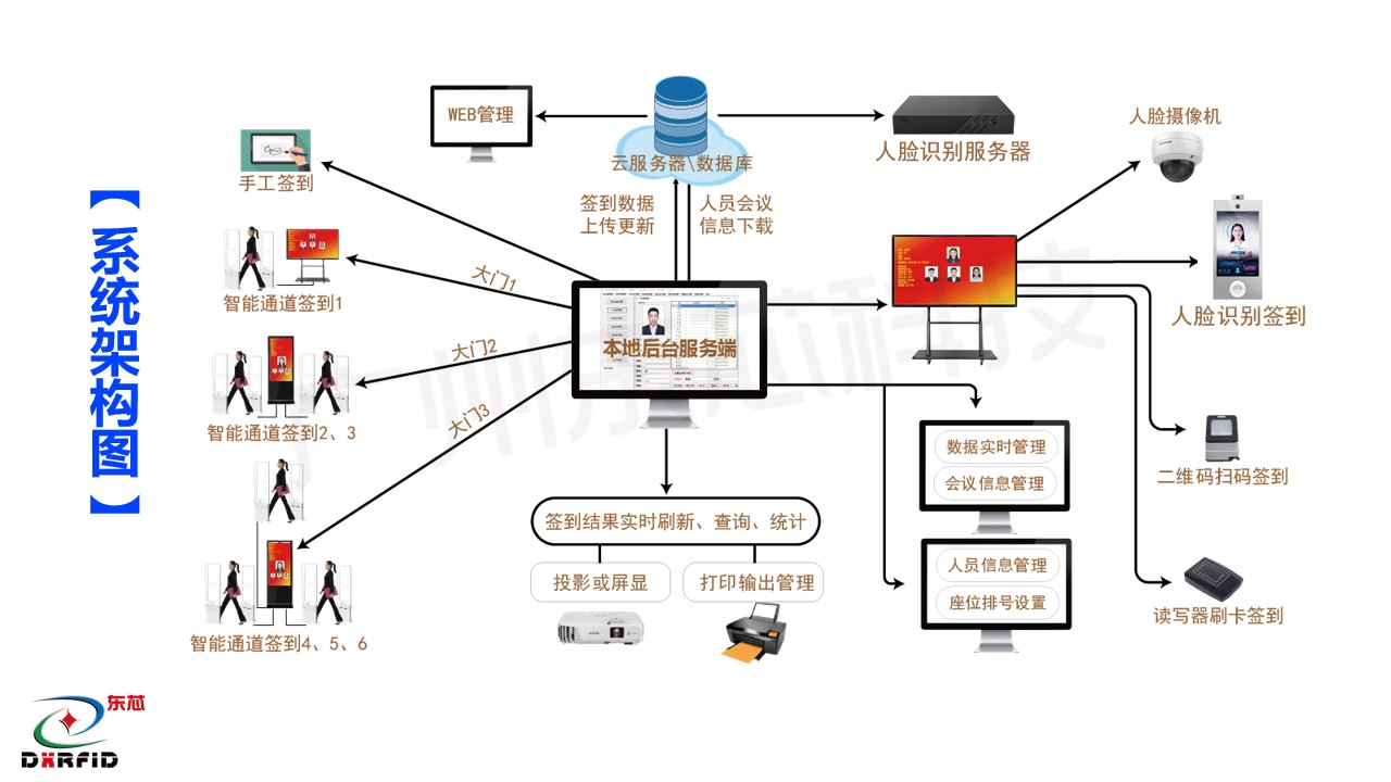 化系统集成为手段,通过 RFID 开云手机web版登录入口证件卡,智能感应通道签到门,人脸测温识别技术等,对企事业单位的会务人员参会签到,进行智能化、